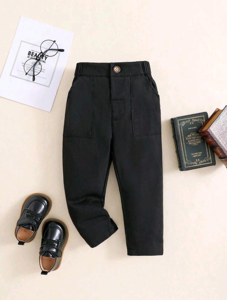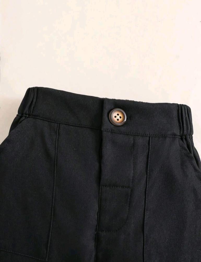 بنطلون أسود بزر و جيوب - 3-6 شهور