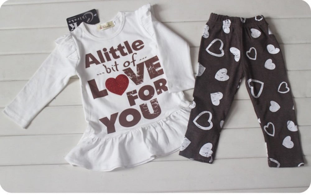 طقم بناتي قطعتين سروال رمادي بقلوب