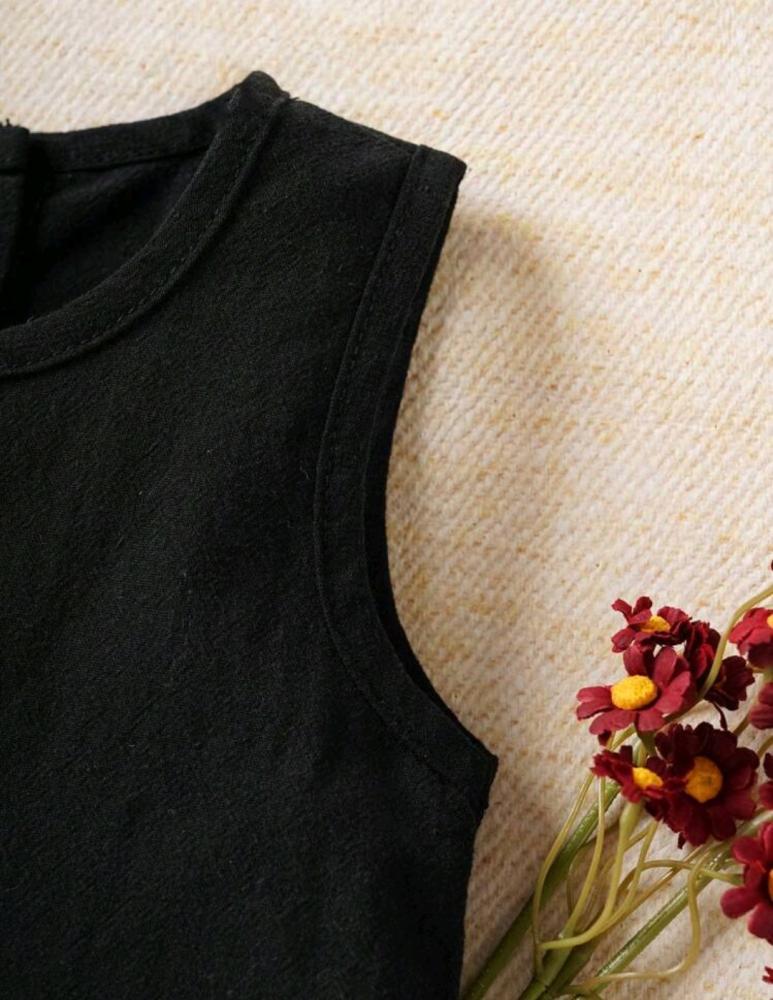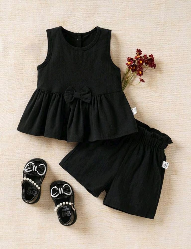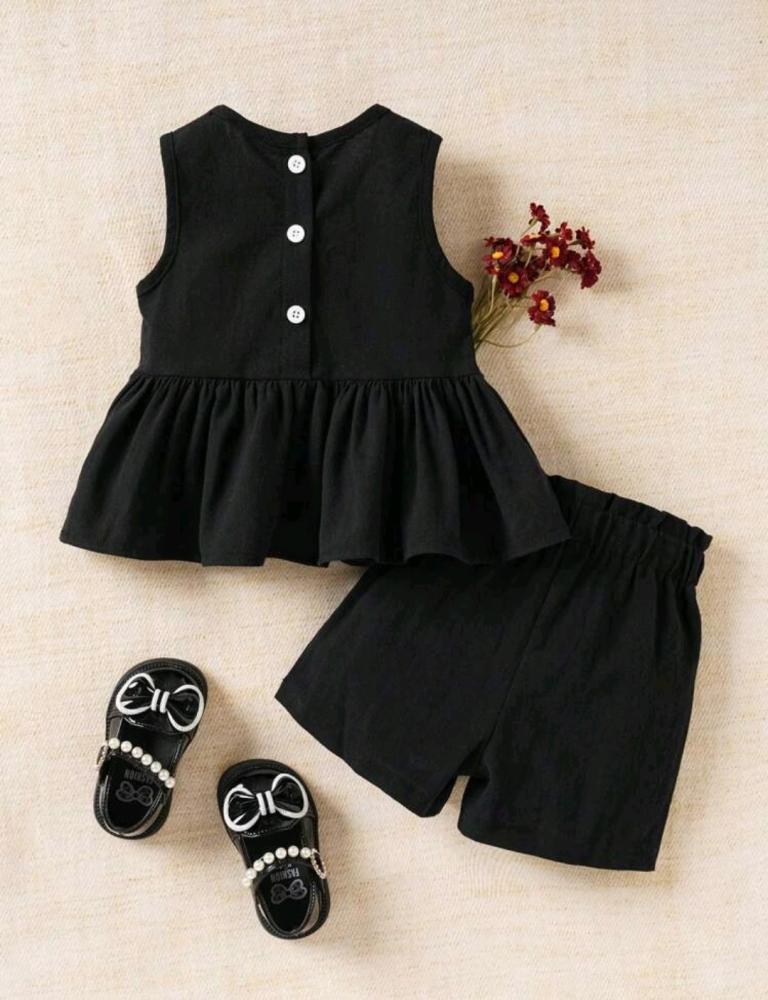 طقم قطعتين بناتي بلوزة بدون أكمام و شورت أسود