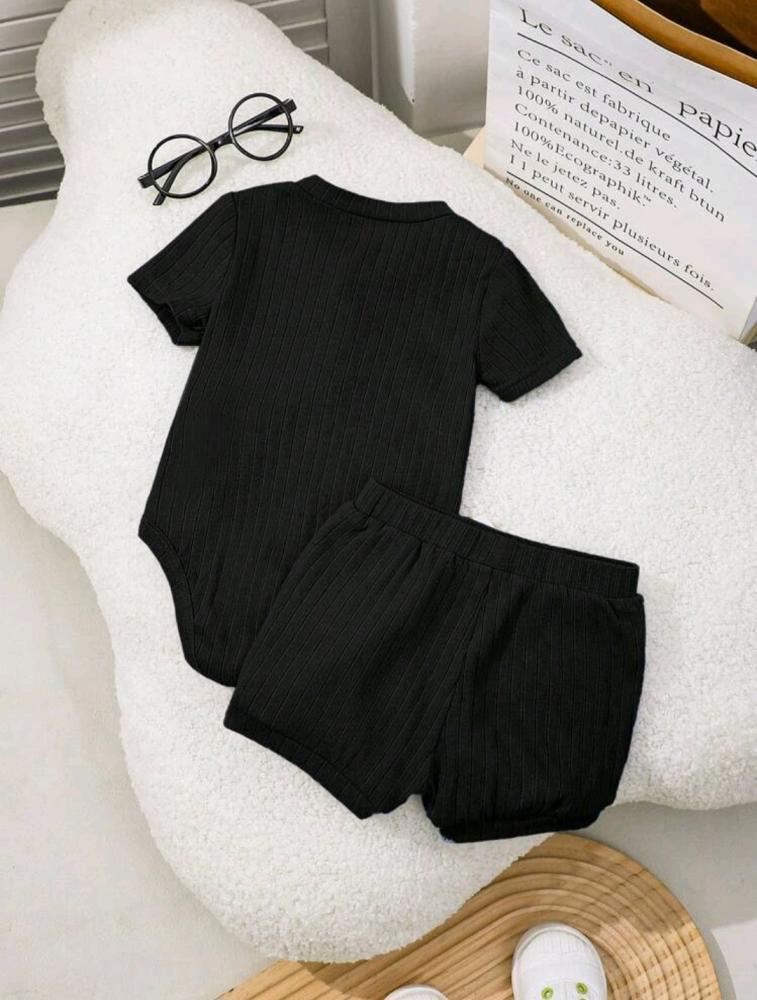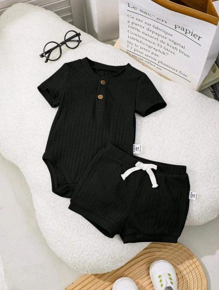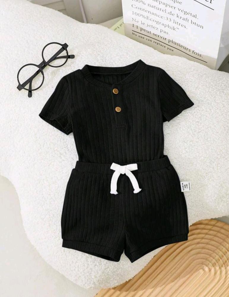 طقم قطعتين محايد رومبر و شورت محايد - أسود