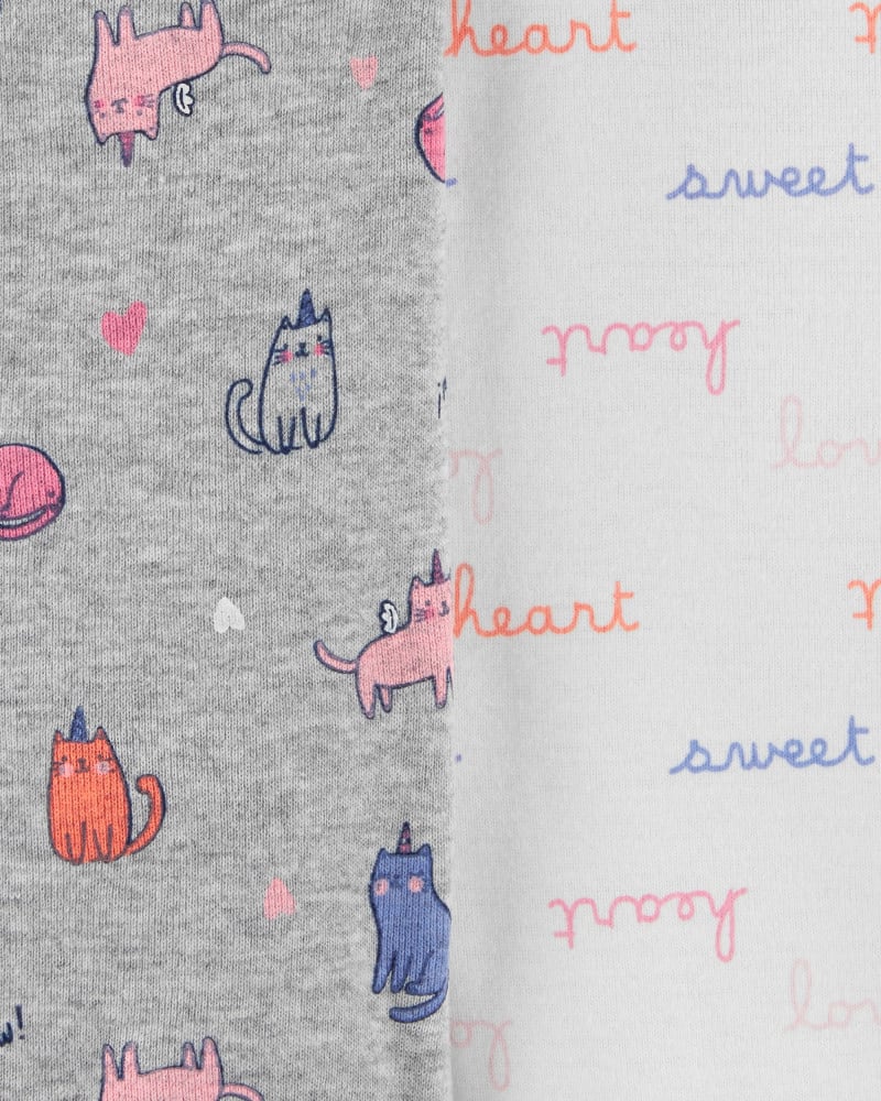 طقم 4 قطع بربتوز بناتي ماركة كارترز - كم طويل - وردي وأبيض ورمادي