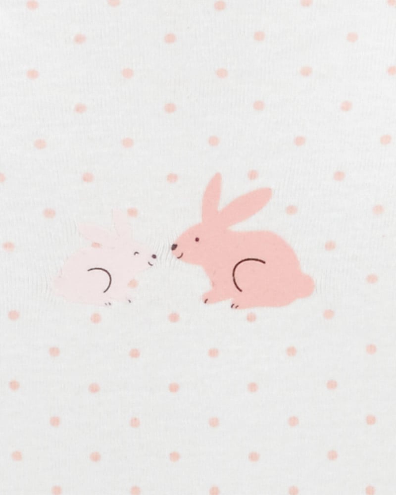 طقم 6 قطع بربتوز بناتي ماركة كارترز - كم طويل - وردي - أرنب