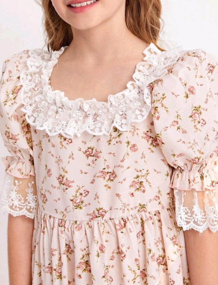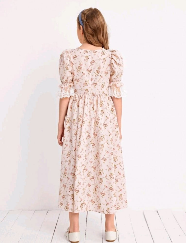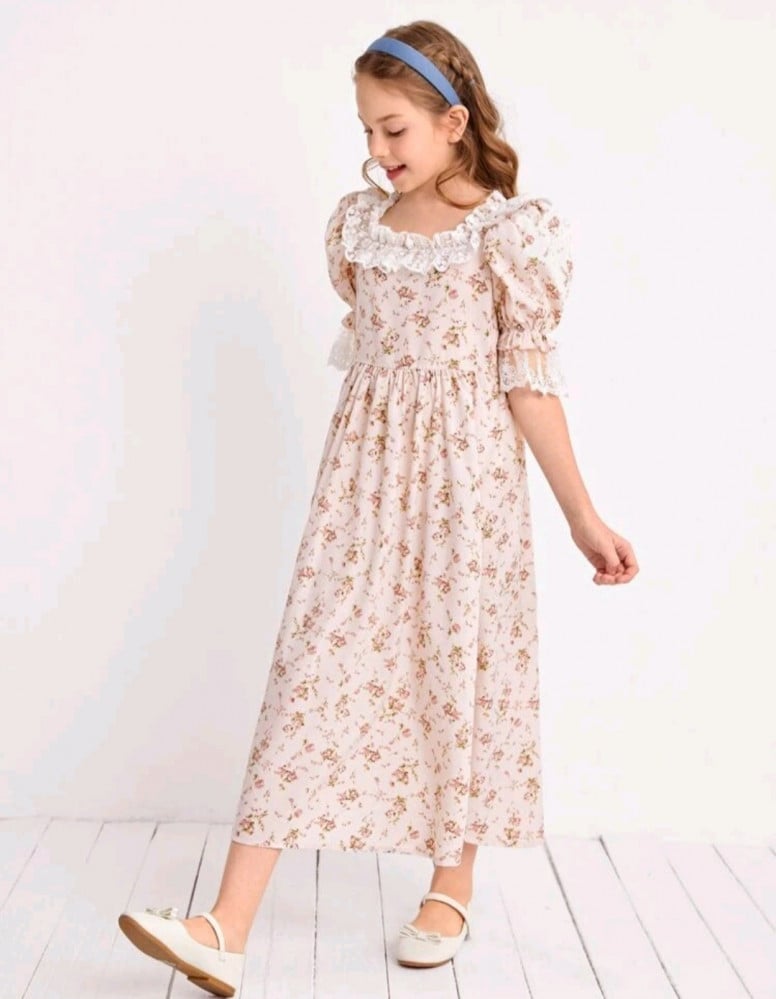 فستان بناتي بدانتيل أبيض