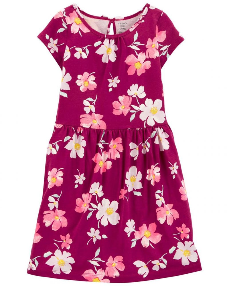 فستان بناتي ماركة كارترز - عنابي مزهر