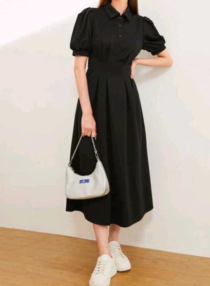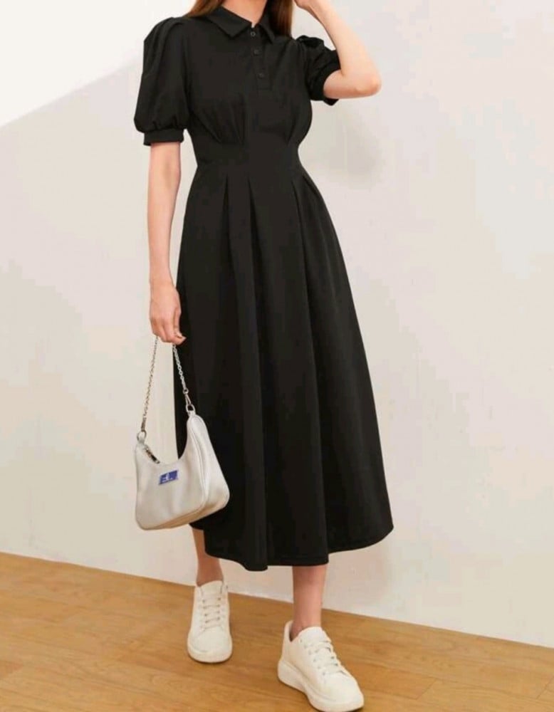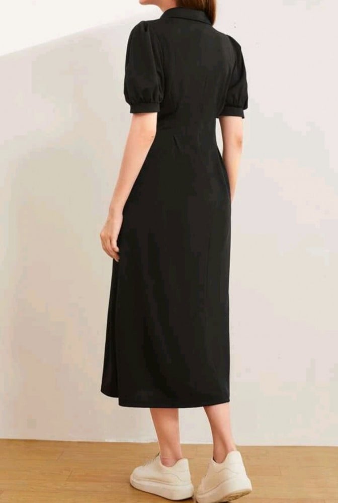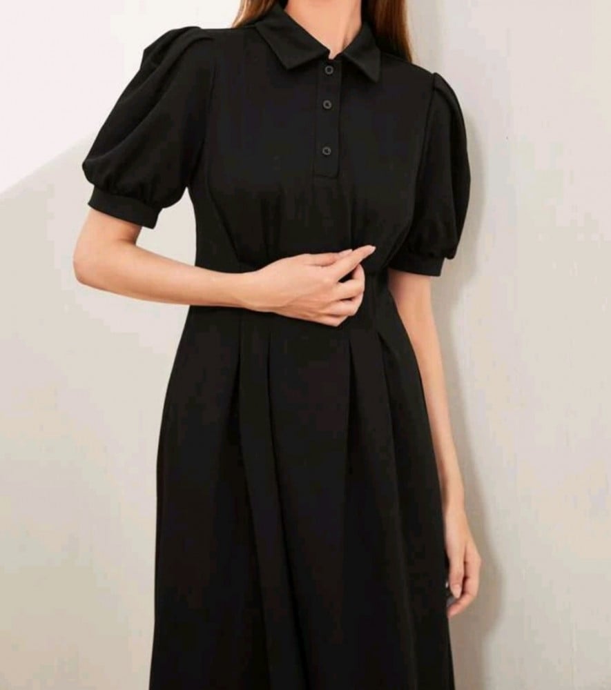 فستان نسائي أسود كلر وأزرار - نصف كم