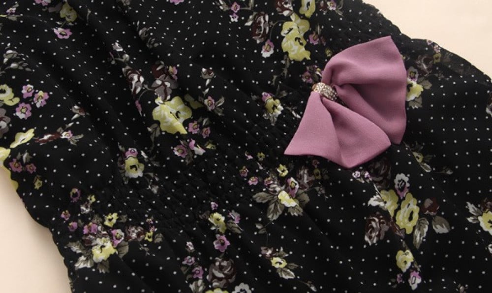 فستان نسائي قصير شيفون أسود وبنفسجي