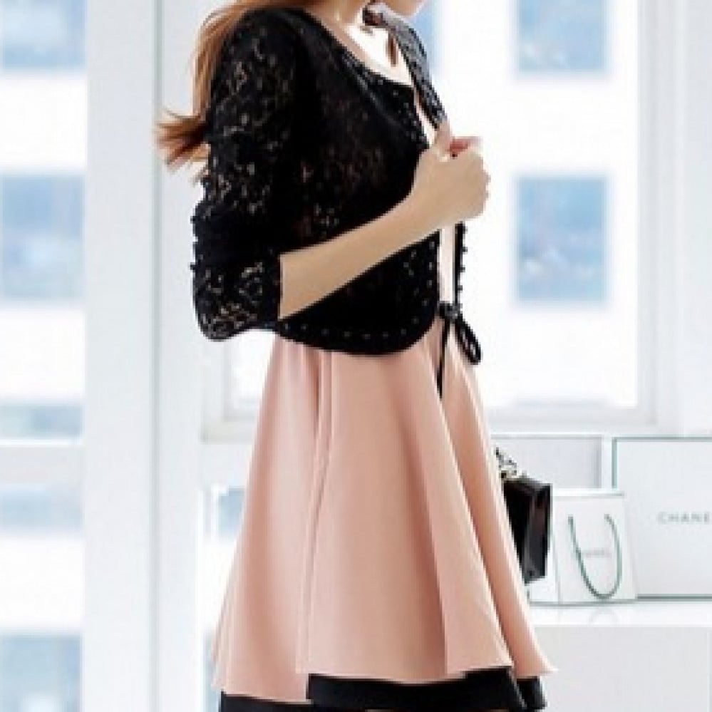 سترة نسائية دانتيل ولؤلؤ 9355 - أسود وسكري