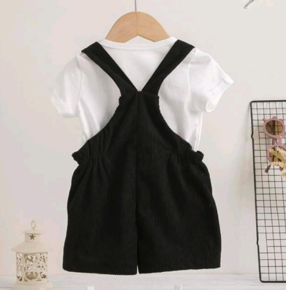 طقم قطعتين بلوزة بيضاء و رومبر أسود